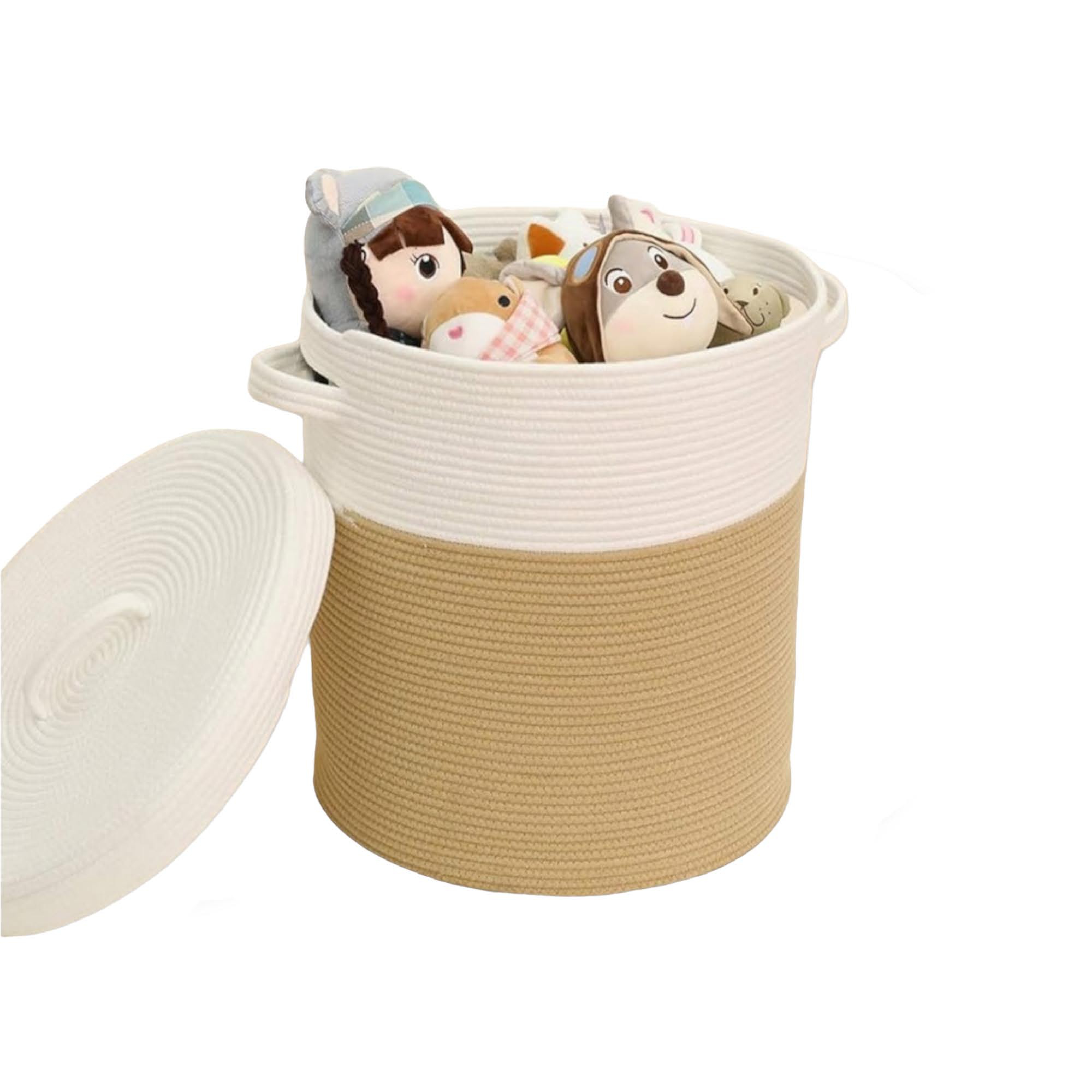 Wäschekorb mit Deckel (Jute/Weiß)