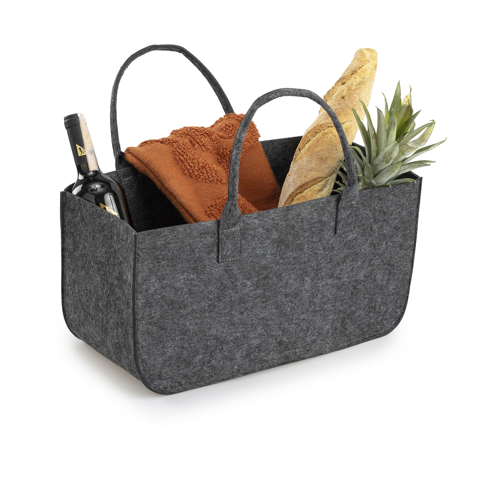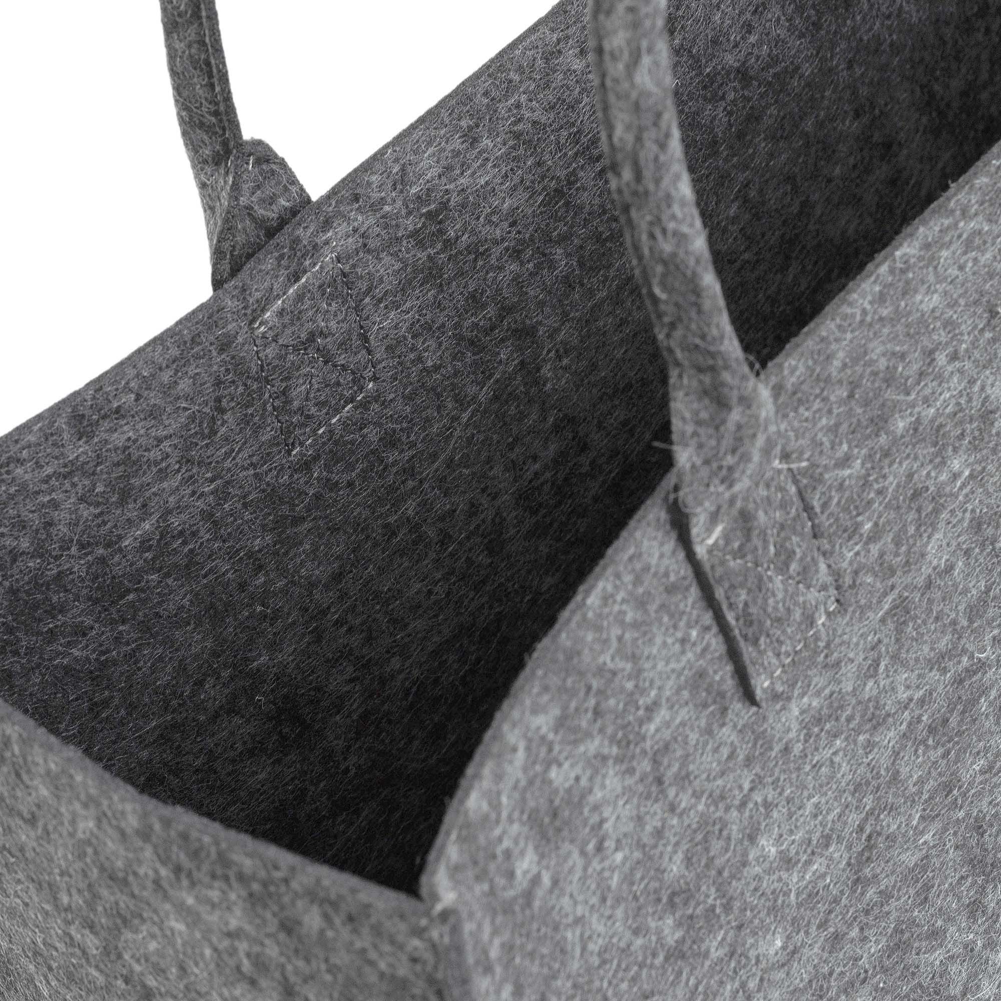 Diese Tragetasche bietet ein großzügiges Innenvolumen. Dank ihrer faltbaren Struktur lässt sie sich bei Nichtgebrauch leicht verstauen. Mit ihrer stilvollen Filzstruktur ist sie ein dekoratives Produkt, das sich ideal zum Ordnen und Aufbewahren Ihrer Habseligkeiten in jedem Bereich Ihres Zuhauses eignet.
