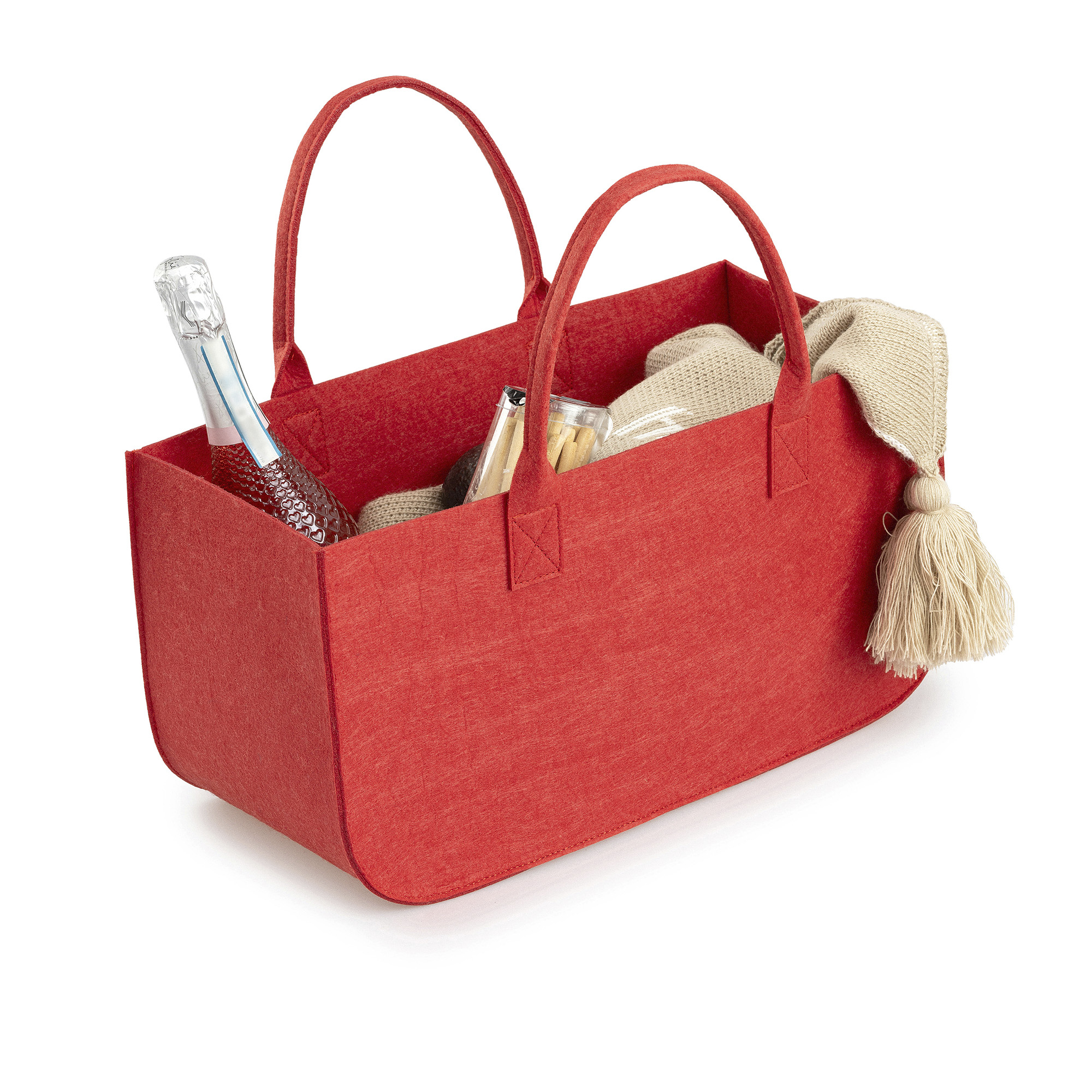 Diese Tragetasche bietet ein großzügiges Innenvolumen. Dank ihrer faltbaren Struktur lässt sie sich bei Nichtgebrauch leicht verstauen. Mit ihrer stilvollen Filzstruktur ist sie ein dekoratives Produkt, das sich ideal zum Ordnen und Aufbewahren Ihrer Habseligkeiten in jedem Bereich Ihres Zuhauses eignet.